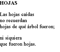עליםהֶעָלִים שֶׁנָּשְׁרו אֵינָם זוֹכְרִים ; אֵיזֶהוּ הָעֵץ שֶׁלּוֹ הָיוּ אֲפִלּוּ . שֶׁעָלִים הָיוּ |